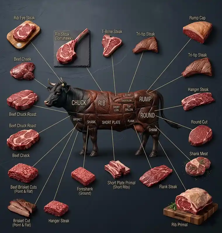 Amerikanisches Rindfleisch:Amerikanisches Rindfleisch ist für seine starke Marmorierung und seinen kräftigen Geschmack bekannt.Getreidegefütterte Rinder sorgen für Steaks, die außergewöhnlich saftig und zart sind und den tiefen, butterartigen Geschmack liefern, den Steakliebhaber auf der ganzen Welt schätzen.